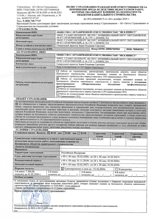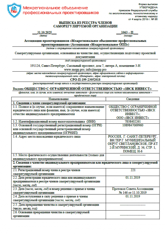ООО «ЗВСК Инвест» - специализированная проектная организация, основной деятельностью которой является разработка проектной и рабочей документации для строительства зданий и сооружений промышленного и административного назначения. Компания принимает участие в крупных проектах в качестве субподрядчика, специализируясь на разработке архитектурно-строительных разделов проектной и рабочей документации.
